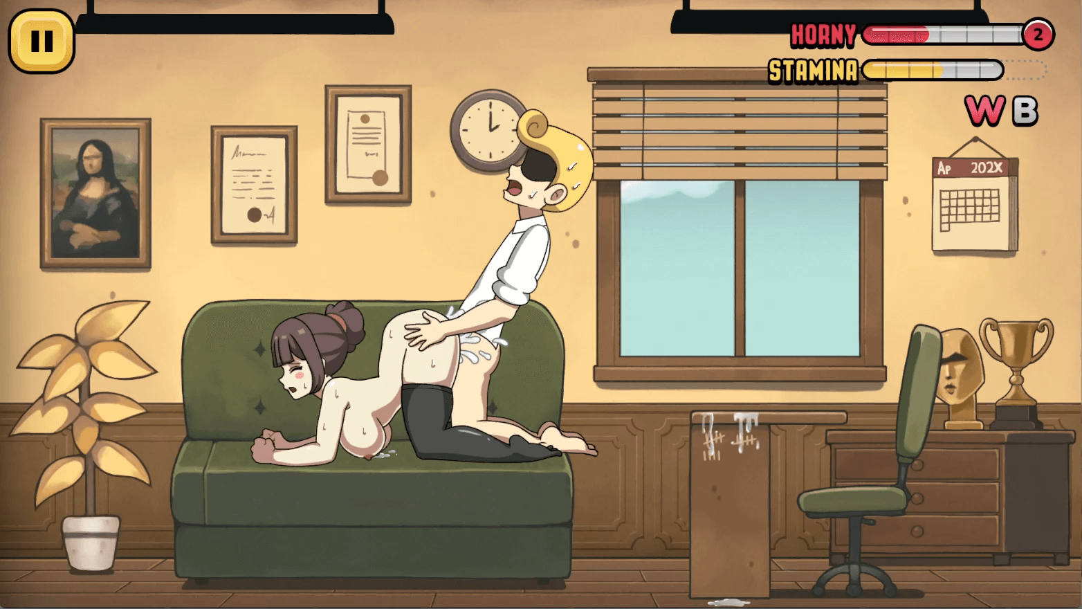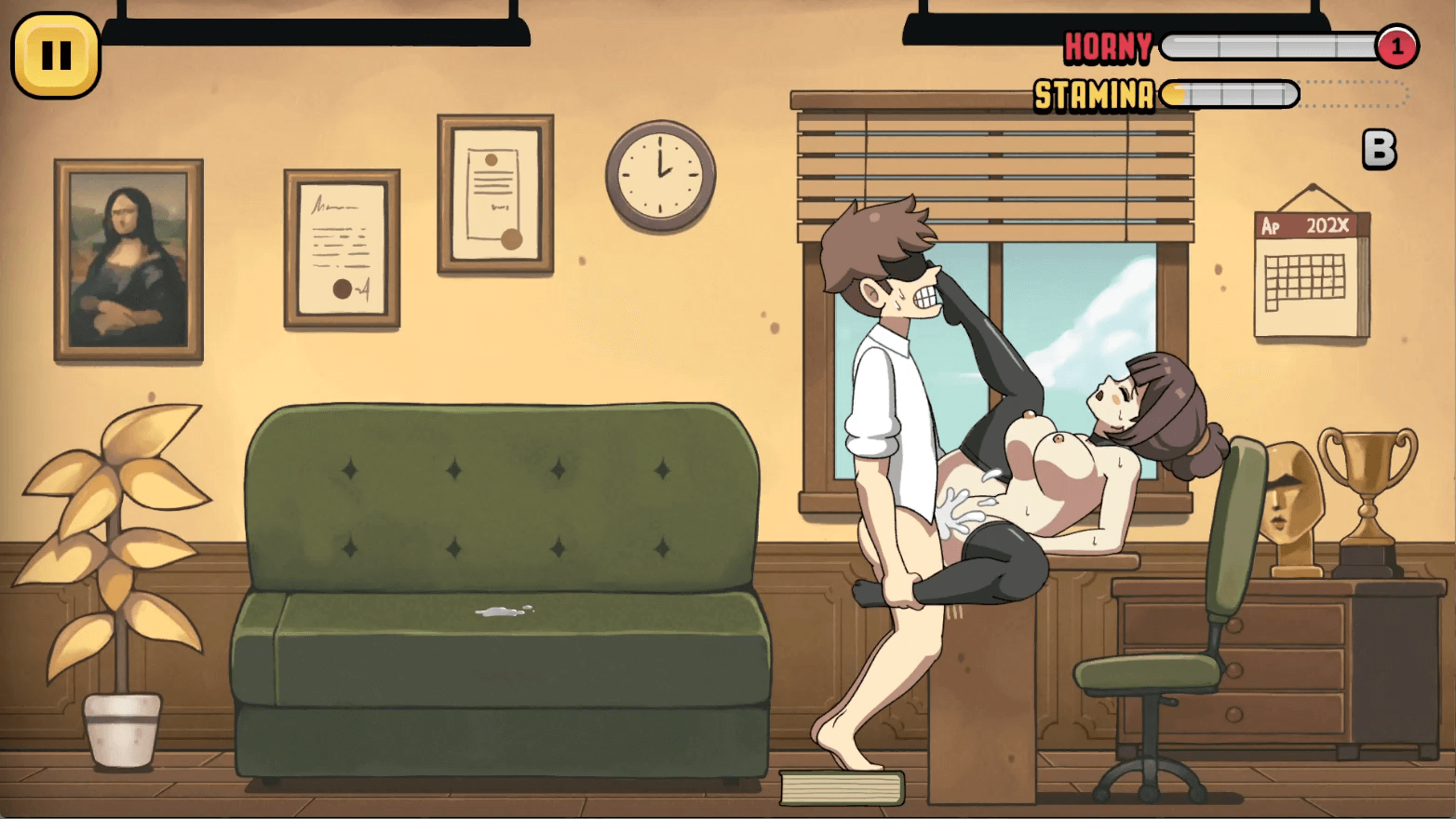 You are a hot secretary who is just doing her daily job, which is to please a lot of men. There will be loads of men who come ot you for advice on sex, and you can please them in different ways. That is actually how you progress in the game. You meet a lot of dudes and then you fuck them. With each time you level up, you get new positions and new naughty things you can enjoy. This includes a lot of additional content and slick animations that you will most definitely enjoy watching as you play this hot sex game.