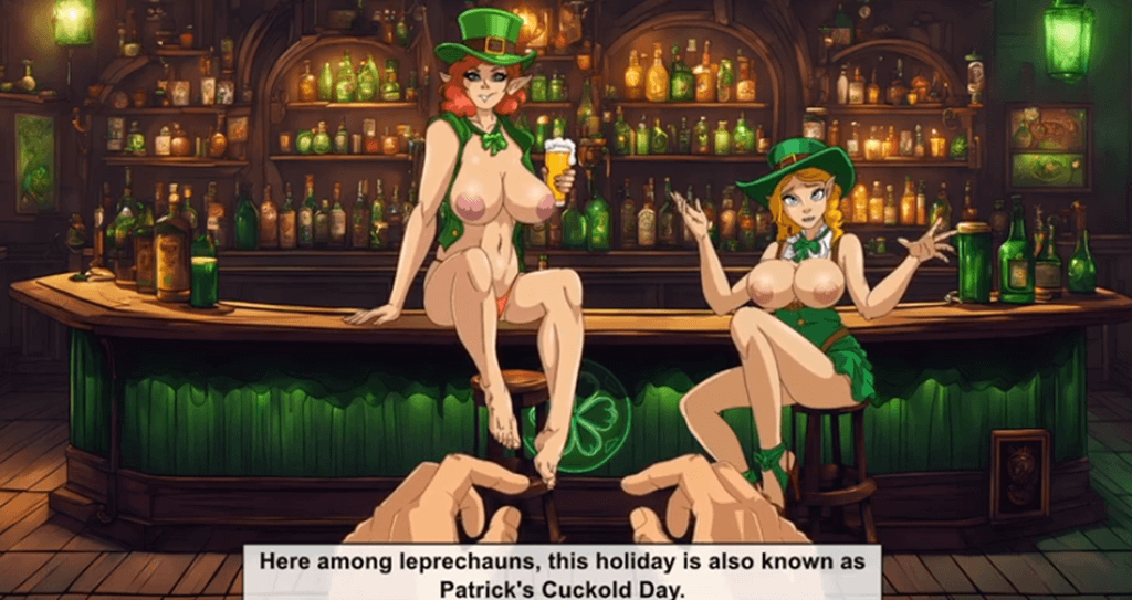 Saint Paddy's Day Cuckold images & screenshots was created by PornGames.com using the Adobe Animate game engine. Hope you enjoyed playing this adventure sex game!
